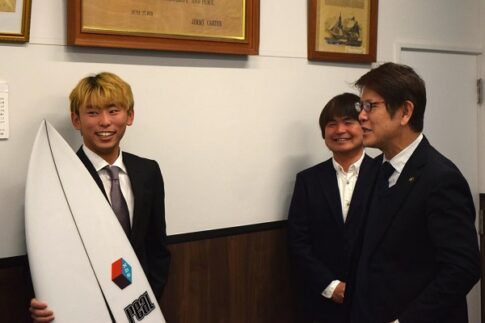 日本大学サーフィンクラブの鈴本健人選手が市長を表敬訪問