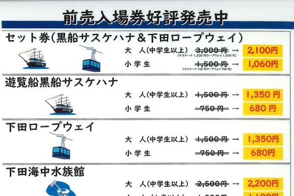 観光施設の前売り券についてお問い合わせが増加中 下田市観光協会サイトによると、観光施設の前売り券についてのお問い合わせが増えているということです。 下田市観光協会では、市内観光施設をお得に利用できる前売り券を販売されてい...