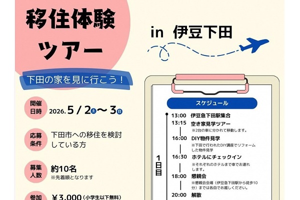 「下田の家を見に行こう!移住体験ツアー」参加者募集 下田市地域おこし協力隊が、「下田の家を見に行こう!移住体験ツアー」の参加者を募集しています。 この投稿をInstagramで見る 下田市(静...