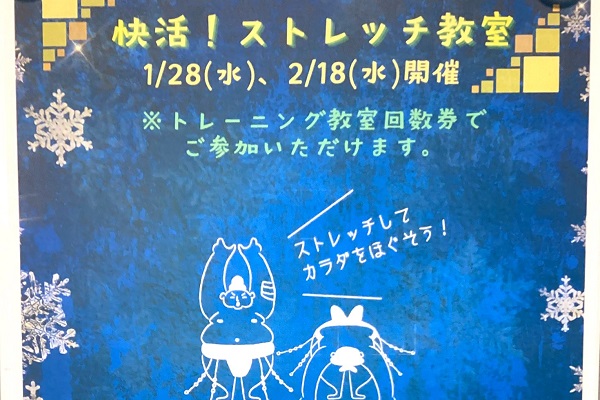 「敷根公園」敷根フィットネスクラブで限定トレーニング教室「快活!ストレッチ教室」開催、1月28日(水)と2月18日(水)