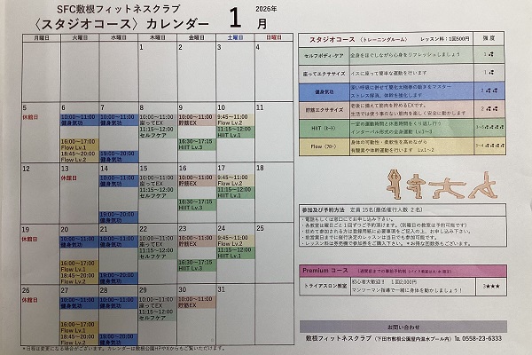 敷根フィットネスクラブ1月のレッスンスケジュール 下田市敷根にある「敷根公園」の公式Xアカウント(@shikinepark)が、敷根フィットネスクラブの2026年1月のレッスンスケジュールを公開されました。 スタジオコー...