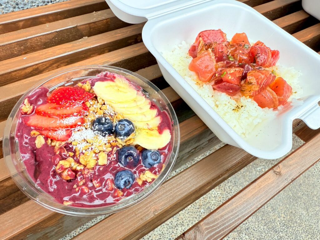 看板メニューのポキをはじめ、アサイーボウル、コーヒーなども提供し、その日の気分やライフスタイルに合わせて使えるお店づくりを大切にしています。