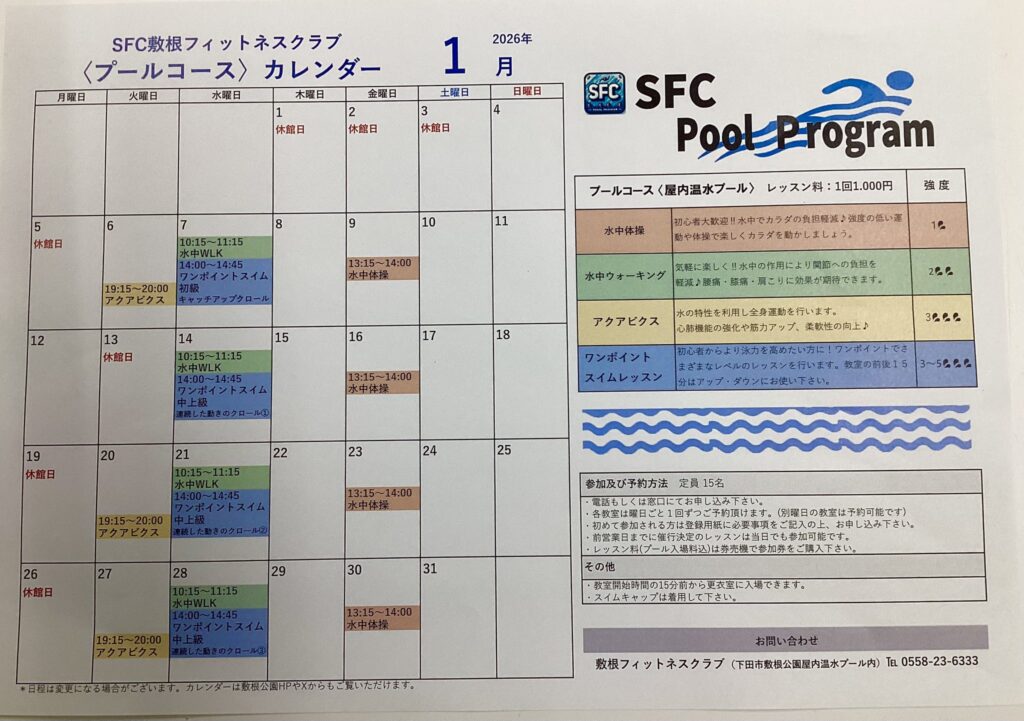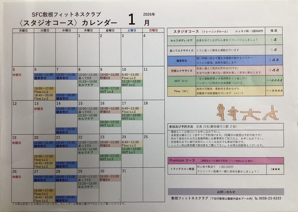 敷根フィットネスクラブ1月のレッスンスケジュール