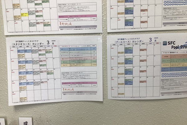 敷根フィットネスクラブ3月のレッスンスケジュール
