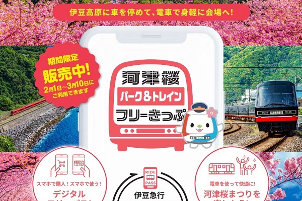 下田ロープウェイもお得に乗車できる「河津桜 パーク&トレインきっぷ」販売中